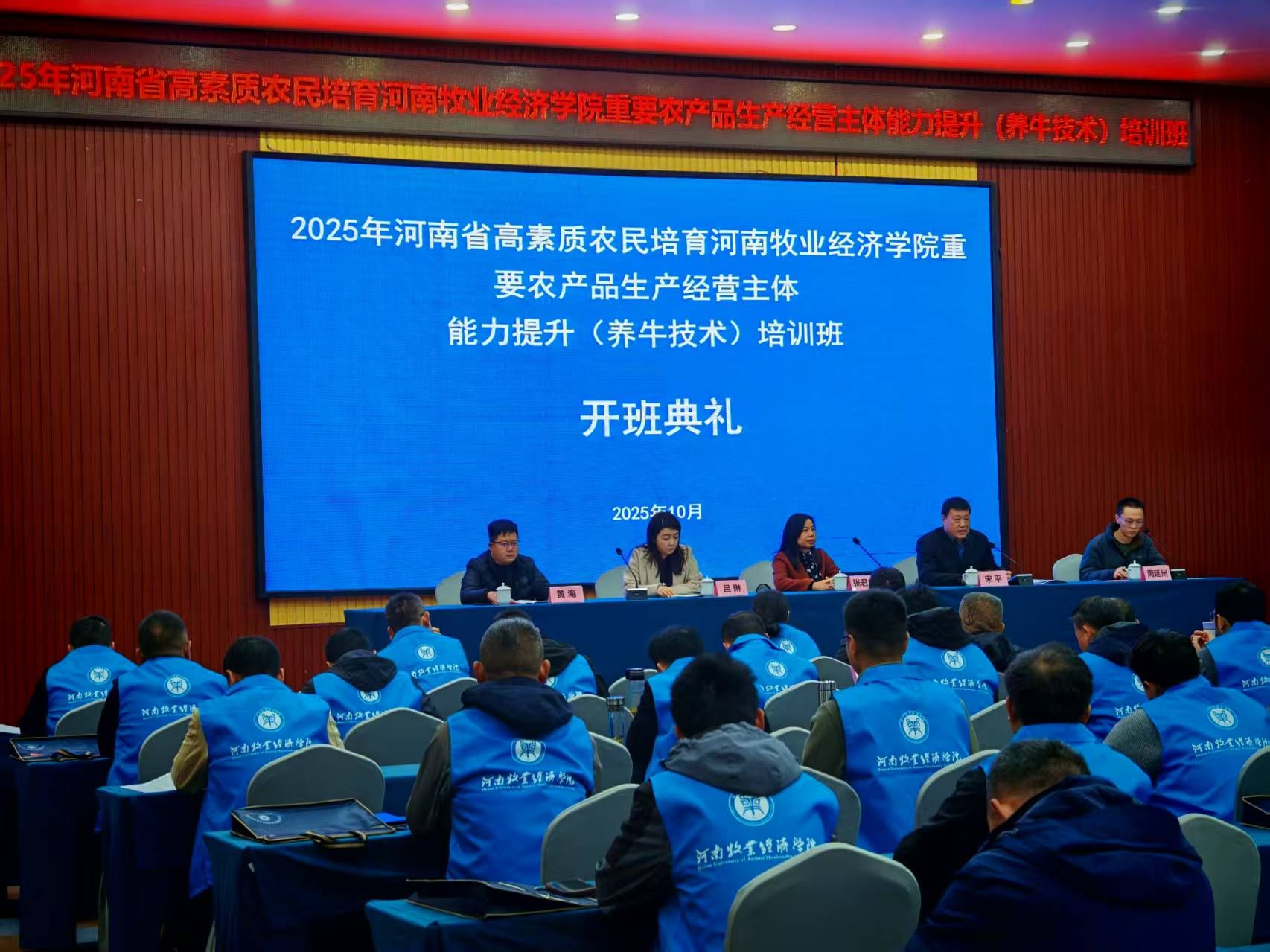 10月27日下午,由我校承办的2025年高素质农民培育(养牛技术一期)培训班开班典礼在河南现代农业研究基地报告厅举行。世俱杯买球入口党总支书记张君华、院长宋平、副院长周延州等相关同志及接受培训的全体学员参加了开班典礼。开班典礼由世俱杯买球入口副院长周延州主持。