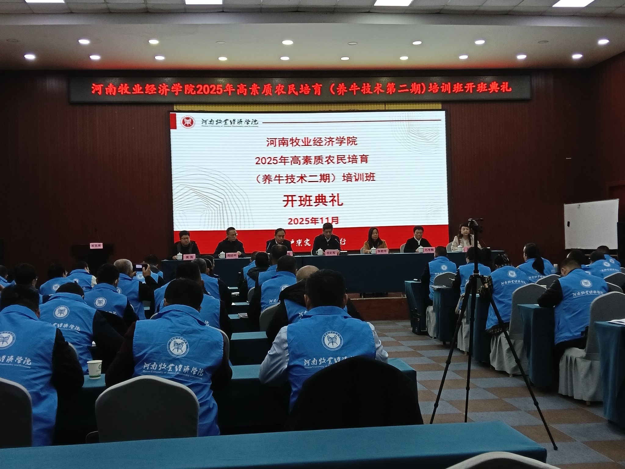 岳彩军在开班典礼致辞中讲到,习近平总书记强调 “要大力发展现代农业,加快推进农业农村现代化”,而畜牧业作为现代农业的重要组成部分,其转型升级离不开懂技术、善经营、会创新的高素质从业者。在座的各位学员,有的是养殖合作社的带头人,有的是家庭农场的经营者,是推动乡村产业振兴的中坚力量。本次培训,我们立足河南畜牧业发展实际和学员需求,量身定制了课程体系,邀请我校动物科技世俱杯买球入口、动物医药世俱杯买球入口的教授,结合当前肉牛养殖行业面临疫病风险高、效益不稳定等痛点,手把手教技术、传经验。并邀请省农业农村厅的专家解读“畜牧业补贴”等政策,指导大家用好用足政策工具,降低经营成本、规避发展风险。世俱杯买球入口专门成立了培训服务专班,从饮食、住宿到教学管理,做到细致安排,为学员们做好服务,让大家安心学习、学有所成。