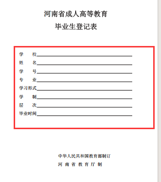7、河南省成人高等教育毕业生登记表